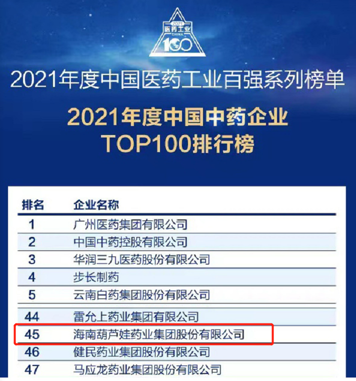 喜讯!GA黄金甲药业连续3年荣登“中国中药企业TOP100排行榜”
