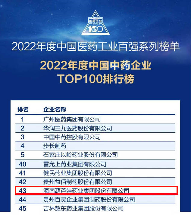 会议期间,一年一度的中国医药工业百强系列榜单隆重揭晓,GA黄金甲药业集团凭借领先的研发优势和扎实的生产实力以及稳健的市场推广能力,连续第四年成功入选“2022年度中国中药企业TOP100排行榜” ,排名稳步上升至第43位。